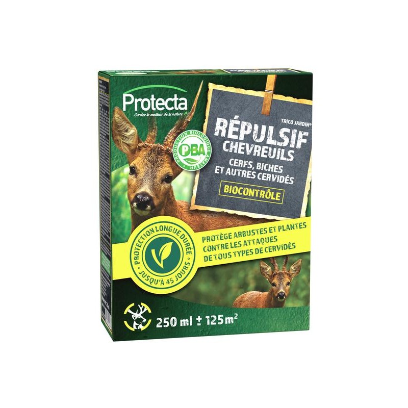 TRICO® est un répulsif concentré à action olfactive et gustative destiné à limiter les dégâts causés par les cerfs et chevreuils sur les cultures professionnelles : vignes, arbres fruitiers, pépinières, plantations forestières et ornementales.